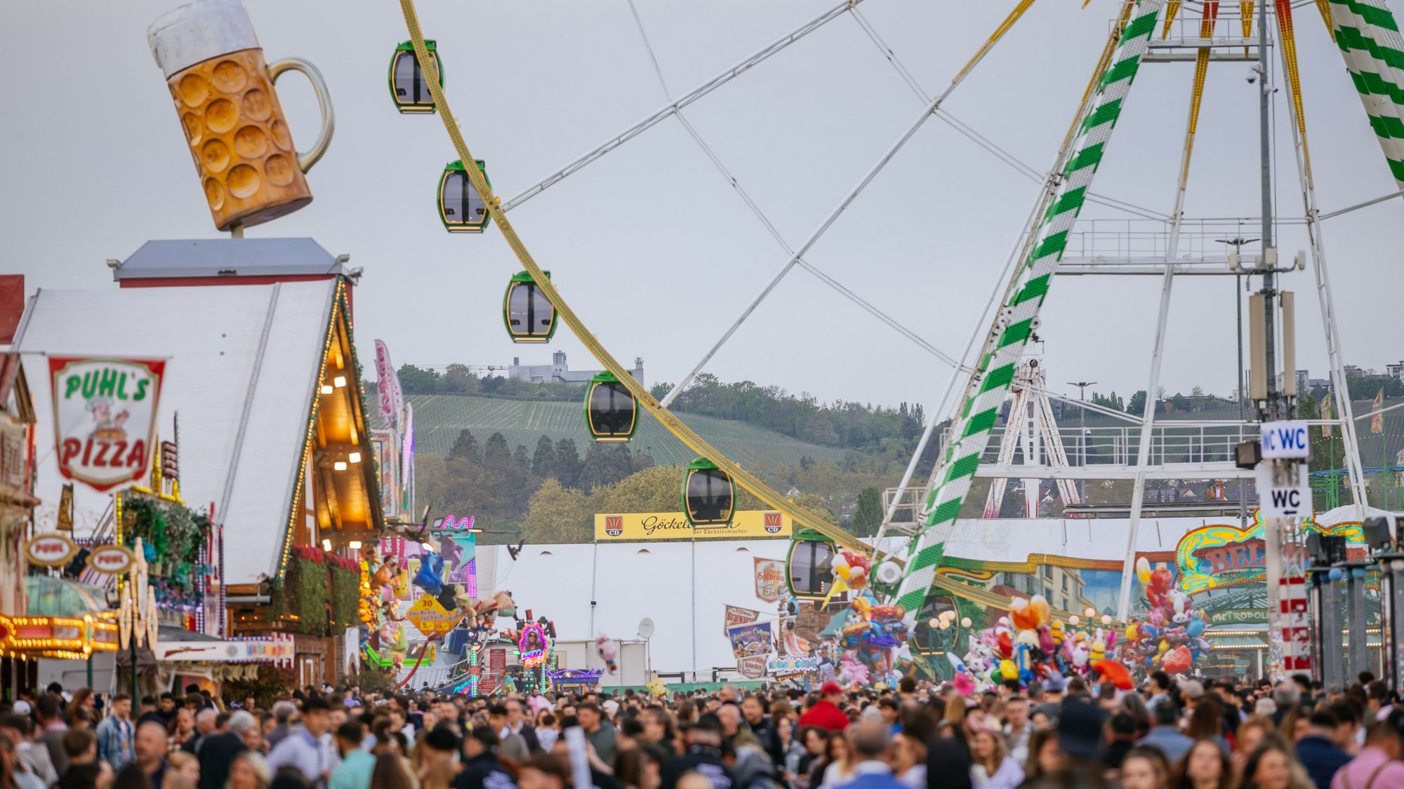 Wenn der Frühling erwacht, startet auf dem Cannstatter Wasen die Saison mit dem Stuttgarter Frühlingsfest. 2025 kamen rund 2,2 Millionen Besucher:innen auf das Festgelände.